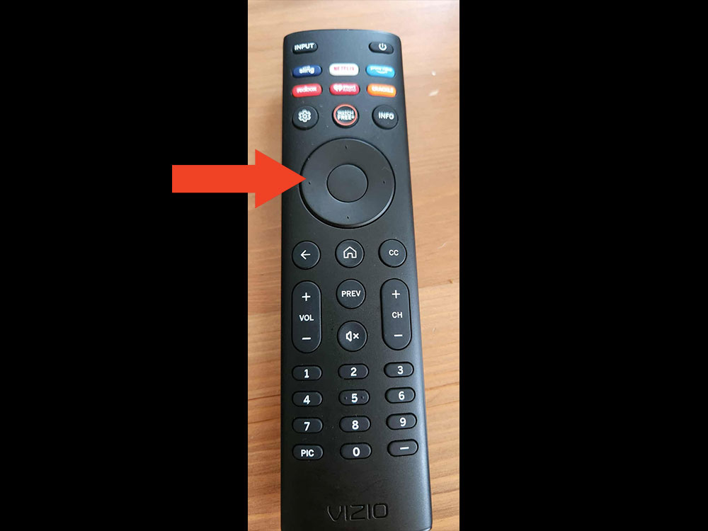 QUICK TIP: To open the left-hand side menu, on your VIZIO remote, click the left button on the circular selection wheel. See image below.