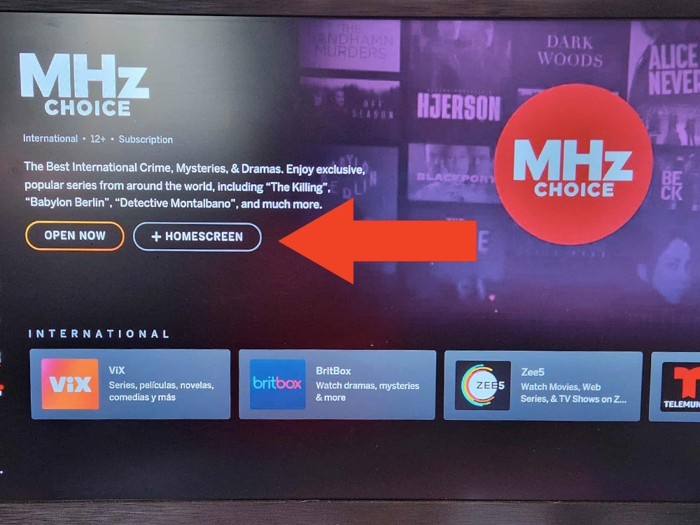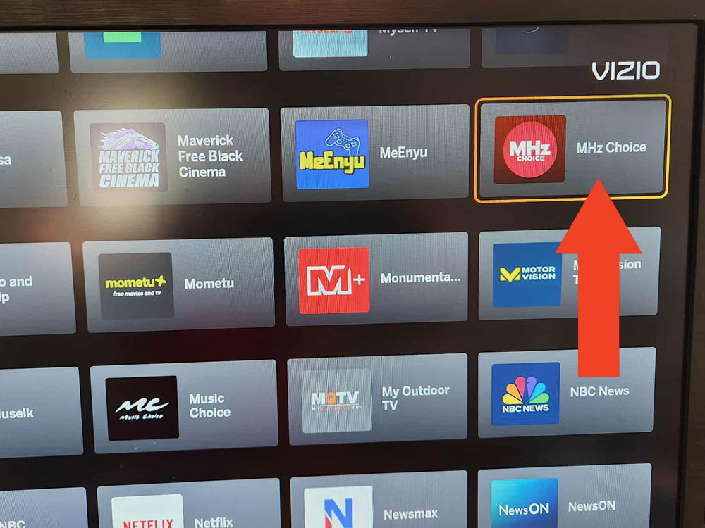 TIP: Some Vizio TV Models will not bring up the option “Customize App Row” after selecting the STAR button on your Vizio remote. If you experience this, under APPS highlight the MHz Choice app and hold down on the OK button for 1-2 seconds. Then select DELETE.
